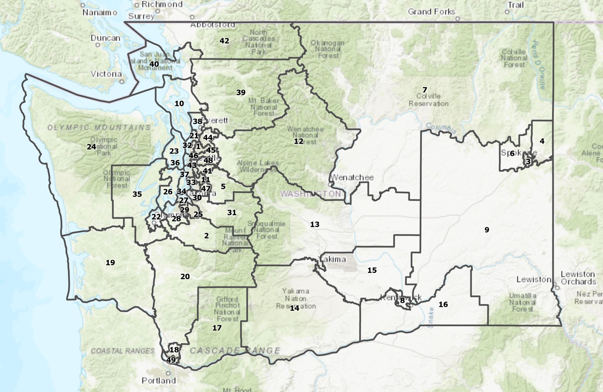 Description: Washington Legislative Districts 2022, as amended by adoption of HCR 4407 on February 8th 2022. Made into law IAW RCW 44.05.Contains 49 features representing each of Washington States 49 Legislative Districts.Projected to NAD 1983 HARN Washington State Plane South US Feet